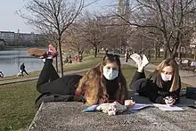 Most countries in Europe introduced mandatory face mask rules for public places.[122][123] On 8 April 2020, the European Centre for Disease Prevention and Control (ECDC) published its masking recommendations, saying that the "use of face masks in the community could be considered, especially when visiting busy, closed spaces".[124][76] On 15 February 2021, ECDC updated the recommendation stating, "Although the evidence for the use of medical face masks in the community to prevent COVID-19 is limited, face masks should be considered as a non-pharmaceutical intervention in combination with other measures as part of efforts to control the COVID-19 pandemic."[125]