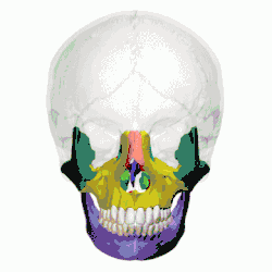 The fourteen facial bones. (Neurocranium is shown in semi-transparent.)
