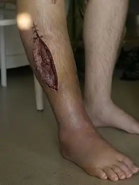 - 1 2 Dente CJ, Wyrzykowski AD, Feliciano DV (October 2009). "Fasciotomy". Current Problems in Surgery. 46 (10): 779โ839. doi:10.1067/j.cpsurg.2009.04.006. PMID 19735797.
