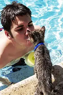 A feline zoonosis is a viral, bacterial, fungal, protozoan, nematode or arthropod infection that can be transmitted to humans from the domesticated cat, Felis catus. Some of these diseases are reemerging and newly emerging infections or infestations caused by zoonotic pathogens transmitted by cats. In some instances, the cat can display symptoms of infection (these may differ from the symptoms in humans) and sometimes the cat remains asymptomatic. There can be serious illnesses and clinical manifestations in people who become infected. This is dependent on the immune status and age of the person. Those who live in close association with cats are more prone to these infections, but those that do not keep cats as pets can also acquire these infections as the transmission can be from cat feces and the parasites that leave their bodies.[1]
