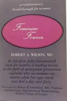 Feminine Forever is a 1966 book written by American gynecologist Robert A. Wilson.[1][2] The book characterized menopause and associated symptoms as a serious disease state and strongly advocated the use of estrogen-based menopausal hormone therapy to alleviate it, maintain femininity and well-being, and improve quality of life and health.[1][2] Wilson's claims were criticized as not being based on adequate research and evidence.[2] Nonetheless, Wilson's book was marketed directly to women and was a best-seller, with it having been implicated in causing a rapid and large rise in prescriptions of menopausal hormone therapy.[2] Subsequently, trials such as the Women's Health Initiative (WHI) contradicted Wilson's claims and showed that menopausal hormone therapy could have significant medical risks, such as venous thromboembolism and breast cancer, and that its benefits were not as great as once believed.[2]