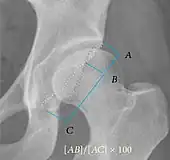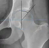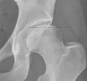 - ↑ Clohisy JC, Carlisle JC, Beaulé PE, Kim YJ, Trousdale RT, Sierra RJ, Leunig M, Schoenecker PL, Millis MB (November 2008). "A systematic approach to the plain radiographic evaluation of the young adult hip". The Journal of Bone and Joint Surgery. American Volume. 90 (Suppl 4): 47–66. doi:10.2106/JBJS.H.00756. PMC 2682767. PMID 18984718.