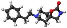 Fenspiride (INN, brand names Eurespal, Pneumorel and others) is an oxazolidinone spiro compound used as a drug in the treatment of certain respiratory diseases.[2] The pharmacotherapeutic classification is antitussives. In Russia it was approved for the treatment of acute and chronic inflammatory diseases of ENT organs (ear, nose, throat) and the respiratory tract (like rhinopharyngitis, laryngitis, tracheobronchitis, otitis and sinusitis), as well as for maintenance treatment of asthma.[3] Russia, Romania, France and other European countries withdrew fenspiride-based drugs from the market due to the risk of QT prolongation and torsades de pointes.[4] Fenspiride is known to have activity as an alpha-1 blocker, H1 antagonist, it also inhibits PDE3, PDE4, PDE5 with -logIC50 values of 3.44, 4.16, 3.8 respectively.[5]