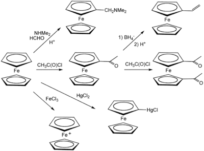 - ↑ Bozak RE (1966). "Acetylation of Ferrocene: A Chromatography Experiment for Elementary Organic Laboratory". J. Chem. Educ. 43 (2): 73. Bibcode:1966JChEd..43...73B. doi:10.1021/ed043p73.