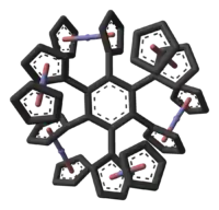 - ↑ Yu Y, Bond AD, Leonard PW, Vollhardt KP, Whitener GD (March 2006). "Syntheses, structures, and reactivity of radial oligocyclopentadienyl metal complexes: penta(ferrocenyl)cyclopentadienyl and congeners". Angewandte Chemie. 45 (11): 1794–1799. doi:10.1002/anie.200504047. PMID 16470902.