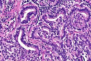 - ↑ Mardini G, Pai U, Chavez AM, Tomashefski JF (March 1994). "Endobronchial adenocarcinoma with endometrioid features and prominent neuroendocrine differentiation. A variant of fetal adenocarcinoma". Cancer. 73 (5): 1383–9. doi:10.1002/1097-0142(19940301)73:5<1383::aid-cncr2820730512>3.0.co;2-v. PMID 8111705.