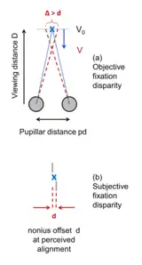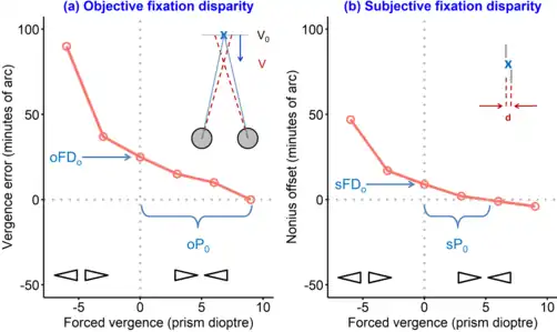 - ↑ Jaschinski, Wolfgang (2018). "Individual objective versus subjective fixation disparity as a function of forced vergence". PLOS ONE. 13 (7): e0199958. Bibcode:2018PLoSO..1399958J. doi:10.1371/journal.pone.0199958. ISSN 1932-6203. PMC 6035046. PMID 29980146.