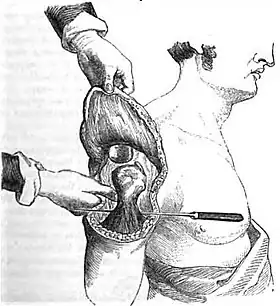 Engraving by John Eric Erichsen depicting flap surgery used to cover an amputation stump