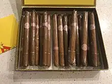Little cigars, both cigarette-sized ones as well as mid-sized cigarillos, are typically flavored, unlike full-size, hand-wrapped premium cigars.[2] Small cigars and cigarillos are disproportionately used by lower income and less educated people,[25] young people,[26][27] African Americans,[28] Hispanics,[25] LGBT people,[25] and men.[29] Usage of flavored cigarillos has grown explosively, with sales in U.S. convenience stores up 50% between 2008 and 2015,[9] after tripling between 1997 and 2007.[28] Among adult and youth cigar users, about 40 percent use flavored cigarillos.[27] The most popular flavors for cigarillos are fruit (38.8 percent), sweet or candy (21.2 percent), and wine (17.0 percent).[9] Flavored cigarillos are popular with lower income and younger people in part because they are inexpensive and are promoted by tobacco companies as affordable alternatives to cigarettes.[9][26] Unlike cigarettes, cigarillos can be sold in small packs of one or two each for around 99¢ for two.[28] In many jurisdictions, cigarillos and other cigars are taxed at lower rates than cigarettes, making them more appealing to low-income populations, including youth, young adults, and the unemployed.[28]