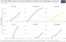 - ↑ Trahan, LH; Stuebing, KK; Fletcher, JM; Hiscock, M (September 2014). "The Flynn effect: a meta-analysis". Psychological Bulletin. 140 (5): 1332–60. doi:10.1037/a0037173. PMC 4152423. PMID 24979188.