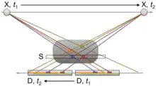 Focal plane tomography generally uses mechanical movement of an X-ray source and film in unison to generate a tomogram using the principles of projective geometry.[4] Synchronizing the movement of the radiation source and detector which are situated in the opposite direction from each other causes structures which are not in the focal plane being studied to blur out.