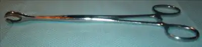 A foerster clamp is a surgical clamp with a round eyelet.[1] Also known as a sponge clamp, or sponge stick. Used for atraumatically grasping lung tissue in thoracic surgery. When grasping a surgical sponge in the jaws, Foerster clamps are commonly used for removing small amounts of fluids from the operative area and applying pressure to sites of bleeding.[1] May also be used for tissue dissection. Invented by David William Foerster of Oklahoma City, Oklahoma, who pioneered sex change operations in the United States.