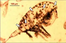 The exuviotrophs are a group of genera of the Foettingeriidae. They only feed on the exuvial fluids trapped in the host's cast-off exoskeleton.