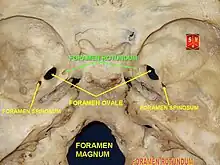 - ↑ Yanagi S (1987). "Developmental studies on the foramen rotundum, foramen ovale and foramen spinosum of the human sphenoid bone". The Hokkaido Journal of Medical Science. 62 (3): 485–96. PMID 3610040.