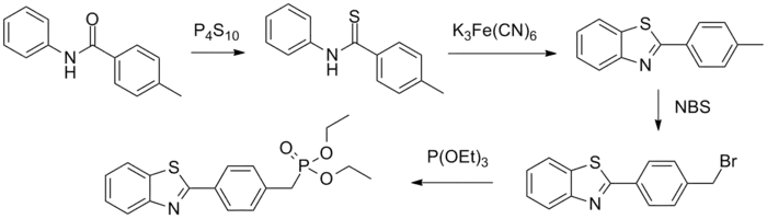 - ↑ Yoshino K, Kohno T, Uno T, Morita T, Tsukamoto G (May 1986). "Organic phosphorus compounds. 1. 4-(Benzothiazol-2-yl)benzylphosphonate as potent calcium antagonistic vasodilator". Journal of Medicinal Chemistry. 29 (5): 820–825. doi:10.1021/jm00155a037. PMID 3701791.