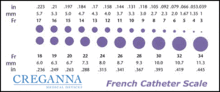 The French scale, also known as the French gauge or Charrière system, is a widely used measurement system for the size of catheters. It is commonly abbreviated as Fr but may also be abbreviated as Fg, FR or F, and less frequently as CH or Ch (referencing its inventor, Charrière). However, the term gauge, abbreviated G or ga, typically refers to the Birmingham gauge for hypodermic needles.[1]