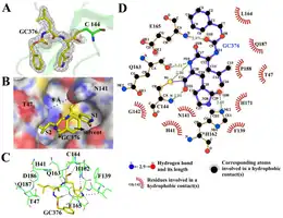 - 1 2 3 Ye G, Wang X, Tong X, Shi Y, Fu ZF, Peng G (February 2020). "Structural Basis for Inhibiting Porcine Epidemic Diarrhea Virus Replication with the 3C-Like Protease Inhibitor GC376". Viruses. 12 (2): 240. doi:10.3390/v12020240. PMC 7077318. PMID 32098094.