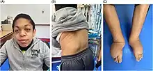 Galactosialidosis, also known as neuraminidase deficiency with beta-galactosidase deficiency, is a genetic lysosomal storage disease.[2] It is caused by a mutation in the CTSA gene which leads to a deficiency of enzymes β-galactosidase and neuraminidase. This deficiency inhibits the lysosomes of cells from functioning properly, resulting in the accumulation of toxic matter within the cell. Hallmark symptoms include abnormal spinal structure, vision problems, coarse facial features, hearing impairment, and intellectual disability. Because galactosialidosis involves the lysosomes of all cells, it can affect various areas of the body, including the brain, eyes, bones, and muscles.[3] Depending on the patient's age at the onset of symptoms, the disease consists of three subtypes: early infantile, late infantile, and juvenile/adult.[4] This condition is considered rare, with most cases having been in the juvenile/adult group of patients.
