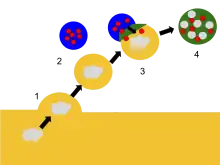 Galactosialidosis is caused by a mutation in the CTSA gene. This gene encodes the enzyme cathepsin A,[6] which forms a protein complex with neuraminidase-1 and beta-galactosidase to break down fats, sugars, and proteins ingested by lysosomes.[4] Cathepsin A is required in this process because within the complex, it prevents neuraminidase-1 and beta-galactosidase from breaking down prematurely, so that they may perform their functions properly. When the CTSA gene is mutated, the protein structure of cathepsin A is defective, making it incapable of binding to other proteins or forming complexes. This leads to a deficiency of beta-galactosidase (GLB1) and neuraminidase-1 (NEU1).[7] As a result, the lysosome is unable to break down toxic substances and waste builds up within the cell.