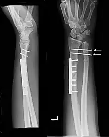- ↑ Hughston, JC (April 1957). "Fracture of the distal radial shaft; mistakes in management". J Bone Joint Surg Am. 39-A (2): 249–64. doi:10.2106/00004623-195739020-00002. PMID 13416321.