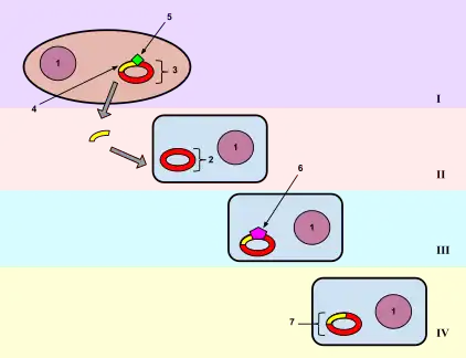 Transformation is one of three processes that lead to horizontal gene transfer, in which exogenous genetic material passes from one bacterium to another, the other two being conjugation (transfer of genetic material between two bacterial cells in direct contact) and transduction (injection of foreign DNA by a bacteriophage virus into the host bacterium).[1] In transformation, the genetic material passes through the intervening medium, and uptake is completely dependent on the recipient bacterium.[1]