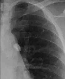 A Ghon focus is a primary lesion usually subpleural, often in the mid to lower zones, caused by Mycobacterium bacilli (tuberculosis) developed in the lung of a nonimmune host (usually a child).[1] It is named for Anton Ghon (1866โ1936), an Austrian pathologist.