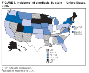 - ↑ "Giardiasis Surveillance — United States, 2009–2010". www.cdc.gov.