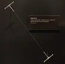 A Gigli saw is a flexible wire saw used by surgeons for bone cutting.[1] A Gigli saw is used mainly for amputation, where the bones have to be smoothly cut at the level of amputation.[2] It is also used in veterinary medicine for cutting antler, horn, and tusks, as well as bone.