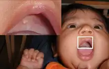 | Epstein's pearl shown in the roof of the mouth on a five-week-old infant | |