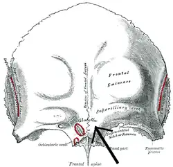 Frontal bone, outer surface, (glabella visible near bottom of bone) | |