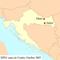 - ↑ "Lethal bird flu found in Croatia". BBC News. 2005-10-26.