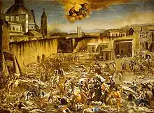 The origins of syphilis are unknown, and some historians argue that it descended from a twenty-thousand-year-old African zoonosis. Other historians place its emergence in the New World, arguing that the crews of Columbus's ships first brought the disease to Europe.[3] The first recorded case of syphilis occurred in Naples in 1495, after King Charles VIII of France besieged the city of Naples, Italy. The soldiers, and the prostitutes who followed their camps, came from all corners of Europe. When they went home, they took the disease with them and spread it across the continent.[3]