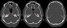 - ↑ Pedroso JL, de Aquino CC, Abrahão A, de Oliveira RA, Pinto LF, Bezerra ML, Gonçalves Silva AB, de Macedo FD, de Melo Mendes AV, Barsottini OG (February 2011). "Gradenigo's Syndrome: Beyond the Classical Triad of Diplopia, Facial Pain and Otorrhea". Case Reports in Neurology. 3 (1): 45–7. doi:10.1159/000324179. PMC 3072192. PMID 21490711.
