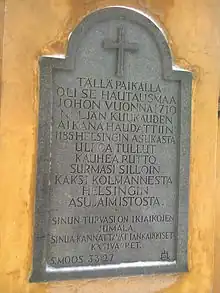 The primary city of Swedish Estonia, Reval (Tallinn), was approached by a Russian force of 5,000 commanded by Christian Bauer in August 1710, and due to a decision by the local officials and nobles, capitulated on 30 September without actually being attacked.[66] Behind its walls was a population of ~20,000 people in August, composed of the regular inhabitants, soldiers, refugees and the inhabitants of the surrounding villages, which had been demolished by the defendants on 18 August.[67] By mid-December, about 15,000 of them had died of the plague, and the number of inhabitants was reduced to 1,990 inside the walls and 200 in the adjacent villages.[68] The rest had either fled elsewhere, or in the case of the surviving Swedish troops and some citizens, had been allowed to leave by ship after the surrender,[68] carrying the plague to Finland.[67]