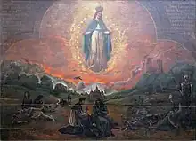 In November 1709, when the Prussian king Frederick I returned to Berlin from a meeting with Russian tsar Peter the Great, the king had a strange encounter with his mentally deranged wife Sophia Louise, who in a white dress and with bloody hands pointed at him saying that the plague would devour the king of Babylon.[48] As there was a legend of a White Lady foretelling the deaths of the Hohenzollern, Frederick took his wife's outburst seriously[49] and ordered that precautions be taken for his residence city.[50] Among other measures, he ordered the construction of a pest house outside the city walls, the Berlin Charité.[50]
