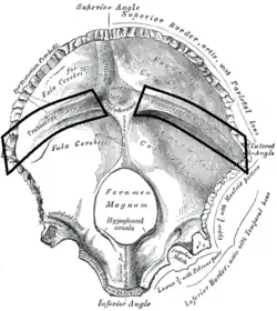| Groove for transverse sinus | |