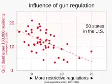 - 1 2 Sharkey, Patrick; Kang, Megan (November 2023). "The Era of Progress on Gun Mortality: State Gun Regulations and Gun Deaths from 1991 to 2016". Epidemiology. 34 (6): 786–792. doi:10.1097/EDE.0000000000001662. PMID 37732847. S2CID 259634489. Fig. 2. ● Sharkey et al. are cited by Lopez, German (November 1, 2023). "A Drop in American Gun Violence". The New York Times. Archived from the original on 2023-11-02. Trendline is from Times article.