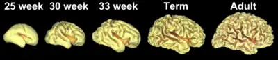 - ↑ White, Tonya; Su, Shu; Schmidt, Marcus; Kao, Chiu-Yen; Sapiro, Guillermo (2010-02-01). "The development of gyrification in childhood and adolescence". Brain and Cognition. Adolescent Brain Development: Current Themes and Future Directions. 72 (1): 36–45. doi:10.1016/j.bandc.2009.10.009. PMC 2815169. PMID 19942335.