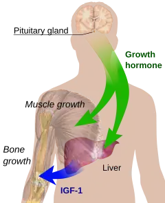 {{cite book}}:|journal=ignored (help)CS1 maint: DOI inactive as of November 2024 (link) - ↑ "Actions of Anterior Pituitary Hormones: Physiologic Actions of GH". Medical College of Georgia. 2007. Archived from the original on 2008-01-11. Retrieved 2008-01-16.