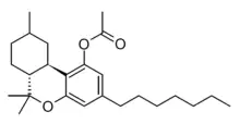 HHCP-O-acetate (HHCPO, HHCP-O) is a semi-synthetic derivative of tetrahydrocannabiphorol (THCP) derived in several steps by hydrogenation to hexahydrocannabiphorol (HHCP) followed by acetylation of the OH group. It has been found as a component of grey-market cannabis products such as e-cigarette liquids and edible gumdrops, and is allegedly a potent and long-lasting psychoactive cannabinoid.[1]