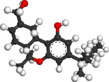HU-210 is a synthetic cannabinoid that was first synthesized in 1988 from (1R,5S)-myrtenol[2] by a group led by Raphael Mechoulam at the Hebrew University.[3][4][5] HU-210 is 100 to 800 times more potent than natural THC from cannabis and has an extended duration of action.[6] HU-210 has a binding affinity of 0.061 nM at CB1 receptors[7] compared to 40.7 nM for Δ9-THC.[8] The binding pose of HU-210 to the CB1 receptor is similar to other synthetic cannabinoids.[9]
