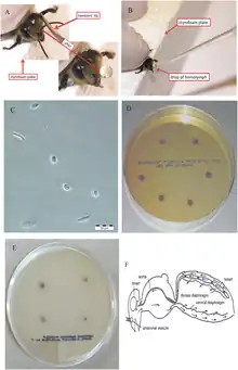 - ↑ Bateman, P. W.; Fleming, P. A. (2009). "There will be blood: Autohaemorrhage behaviour as part of the defence repertoire of an insect". Journal of Zoology. 278 (4): 342–8. doi:10.1111/j.1469-7998.2009.00582.x.