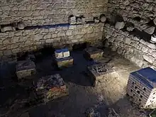 Jordan contains several hammams from the Umayyad era (7th to 8th centuries), making them the oldest known examples of Islamic bathhouses. Many of these are attached to the so-called "desert castles", including Qusayr 'Amra, Hammam al-Sarah, and Qasr al-Hayr al-Sharqi.[2][4][5] Qusayr 'Amra is particularly notable for the frescoes in late Roman style that decorate the chambers, presenting a highly important example of Islamic art in its early historical stages.[54]