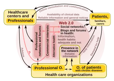 - ↑ Van De Belt, Tom H.; Engelen, Lucien Jlpg; Berben, Sivera AA; Schoonhoven, Lisette (2010). "Definition of Health 2.0 and Medicine 2.0: A Systematic Review". Journal of Medical Internet Research. 12 (2): e18. doi:10.2196/jmir.1350. PMC 2956229. PMID 20542857.