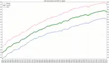 The climate and weather patterns in Japan have undergone changes that have led to an increase in mean temperature.[11] As a result, vulnerable populations such as the elderly are at high risk due to the intensity of heat waves and heat stress.[12] The rise in temperatures is anticipated to enable the transmission of diseases throughout Japan, including vector-borne illnesses like dengue, which tend to thrive in warmer climates.[13]