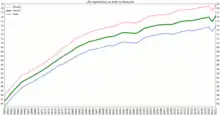 Death rate for Malaysia in 2016 was 4.9 per 1,000 people. Death rate of Malaysia has decreased from 8 per 1,000 people in 1967 to 4.9 per 1,000 people in 2016.[11] A total of 162,201 deaths were recorded in the year 2016 and there is an increase of 4.1% as compared to 2015 with 155,786. (51.8%). The number of medically certified deaths in 2016 were recorded at 85,637 (52.8%) which is an increase of 1.0 percentage points as compared to 80,691 in 2015 (51.8%)[12]
