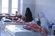 Healthcare in Afghanistan is slowly improving after it was almost non-existent due to the decades of war. Currently, there are over 3,000 health facilities found throughout Afghanistan.[1][2] More than 17,000 health posts have been established in the country, including the first neurosurgery hospital. Latest reports say 38,000 Afghan women work as midwives.[3] From 2001 to 2021, Afghanistan experienced improvements in healthcare, with life expectancy increasing from 56 to 64 years and the maternal mortality rate reducing by 50%. 89% of residents living in cities have access to clean water in 2021, up from 16% in 2001.[4] Despite these improvements, Afghanistan's healthcare system remains poor when compared with its neighboring countries.