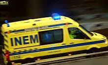 INEM ambulance speeding to respond to a medical emergency.