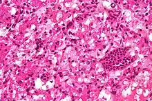 Micrograph of a cerebellar hemangioblastoma. HPS stain.