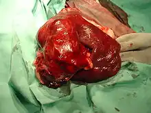 | Hemangiosarcoma of the spleen in a dog, removed after surgery | |